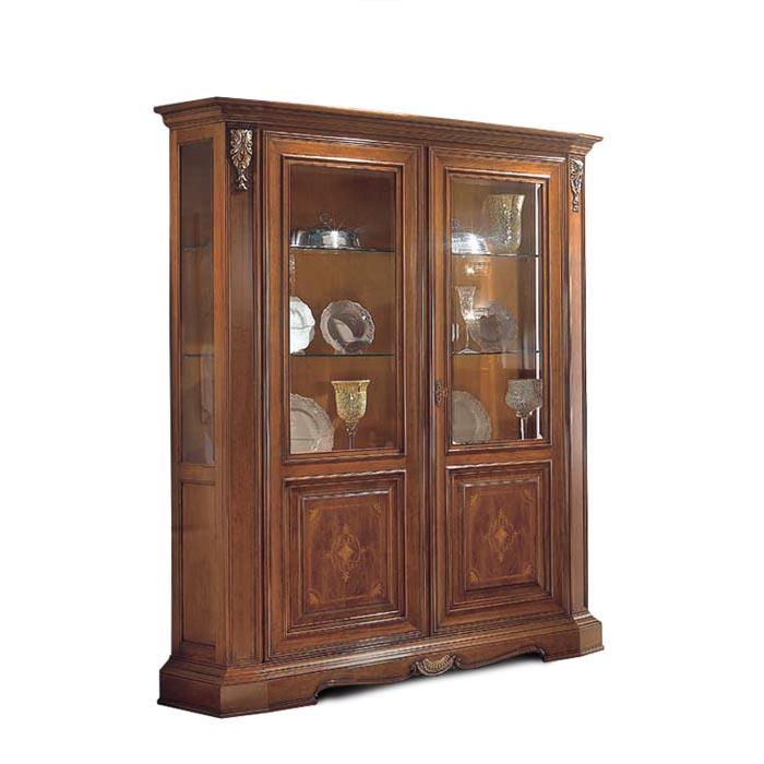 Mata showcase made of solid walnut wood with two doors. Available in a variety of shades for wood treatment with a polish and color of your choice.