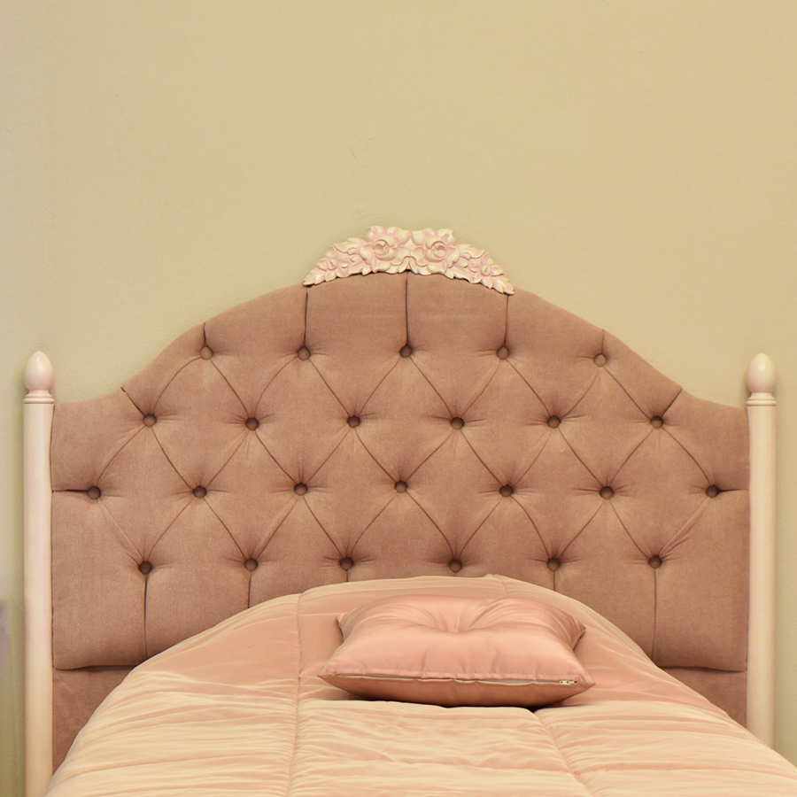 Χειροποίητο παιδικό κρεβάτι με ψηλό κεφαλάρι Classic Ropmantic. Ένα εντυπωσιακό κρεβάτι από ξύλο καρυδιάς με ροζ πατίνα στις λεπτομέρειες του. Χειροποίητη δημιουργία με έμφαση την ποιότητα του ξύλου και την άριστη ποιότητα υφάσματος.