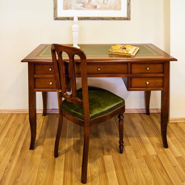 Γραφείο με δέρμα από μασίφ καρυδιά .