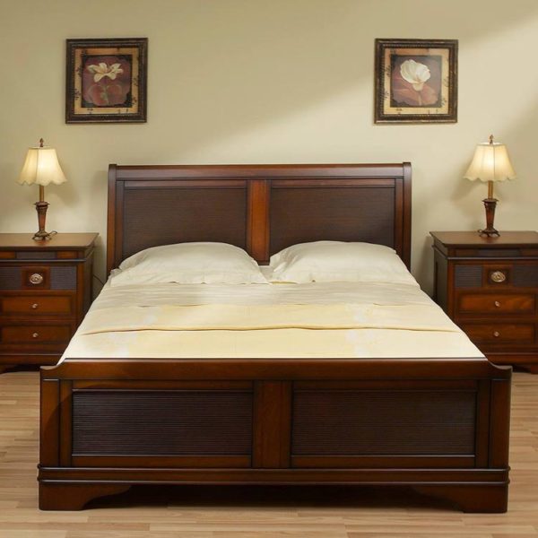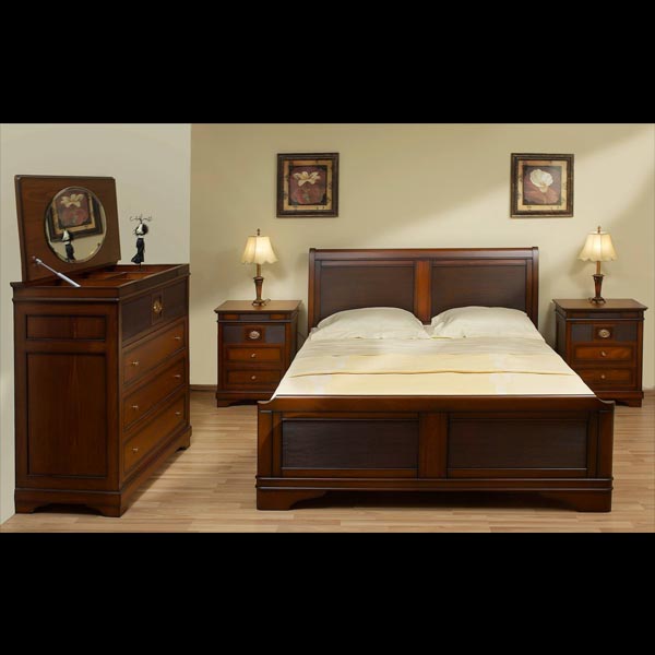 Κλασικό κρεβάτι από ξύλο οξυάς με λεπτομέρειες σε μαύρη πατίνα. Κρεβατοκάμαρα της σειράς Κλεοπάτρα.