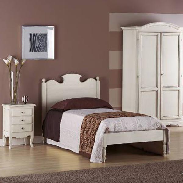 Νεανικό παιδικό κρεβάτι λευκού χρώματος από ξύλο καρυδιάς βαμμένο σε λευκή πατίνα.